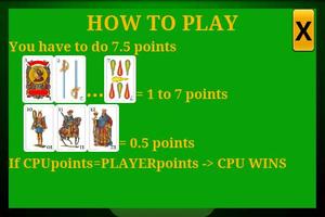 七个半的甲板播放了40张卡片甲板(1到7的卡值,三张脸部卡,带四个西装)。面卡的价值为一半,而从ACE到七个的卡值则值得其标称价值。目标是达到最高分数,而没有超过7½。
